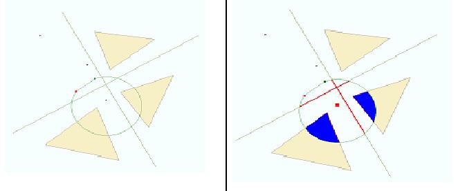 The figure below shows an example of the intersect operation. The input geometry array contains all geometries shown on the left of the figure with the exception of the central circular polygon. The output array contains the modified geometries shown in the right part of the figure. Note that two of the output points will be “empty” because their corresponding inputs are outside the circular polygon.