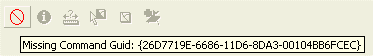 A command is created automatically when an item is added to the ToolbarControl through the property pages. If the *.dll file containing the command is missing or is unregistered the command will be a missing command.