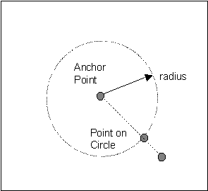 Projects this point to the perimeter of the circle defined by radius and anchor.