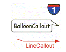 The TextBackground abstract class defines the common properties of the different types of background�MarkerTextBackground, BalloonCallout, and LineCallout. Use a MarkerTextBackground to draw text over a single glyph from a font (for example, a highway shield and number). A BalloonCallout draws a rectangular- or balloon-shaped background for a text string with a predefined leader line. A LineCallout is similar to a BalloonCallout but has a different leader line with a user-defined style and an accent bar.
