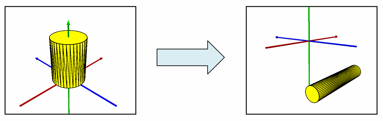 RotateVector3D | Rotates the object about axis defined by the specified vector through an angle measured in radians. |