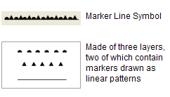 - Symboles linéaires - Symboles utilisés pour dessiner des entités linéaires et des limites de polygone, ainsi que pour le rendu d'autres lignes de carte. Par exemple :